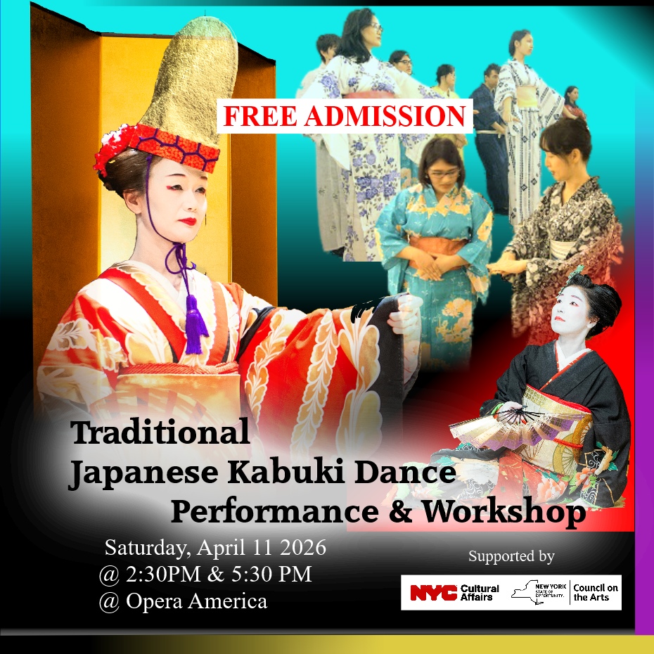 Japan Performing Arts, Inc. (JPA) announces its free public program: “Traditional Japanese Kabuki Dance Performance & Workshop.” This time, a Japanese dance workshop will also be held in the theater.